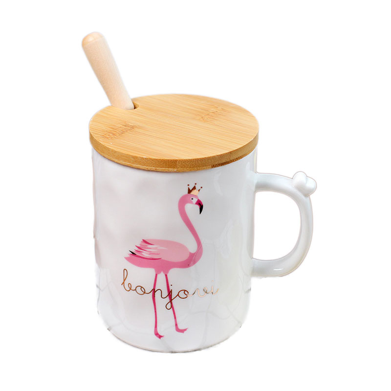 Hello Flamingo火烈鸟北欧INS风带盖带勺带竹杯盖办公陶瓷杯 十元内拓客小礼品