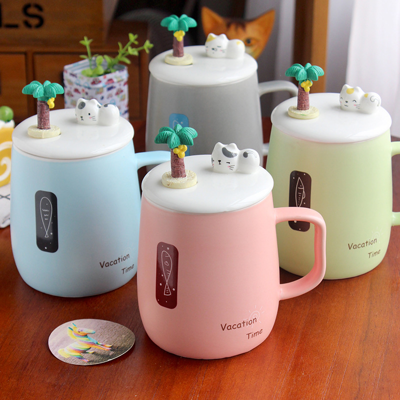 vacation time 创意浮雕带盖带勺陶瓷马克杯 办公咖啡杯定制 创意伴手礼小礼品