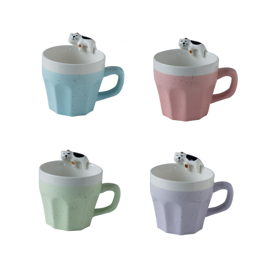 动物咖啡杯立体陶瓷杯 彩色猫咪水杯杯边动物杯 可爱卡通创意杯子