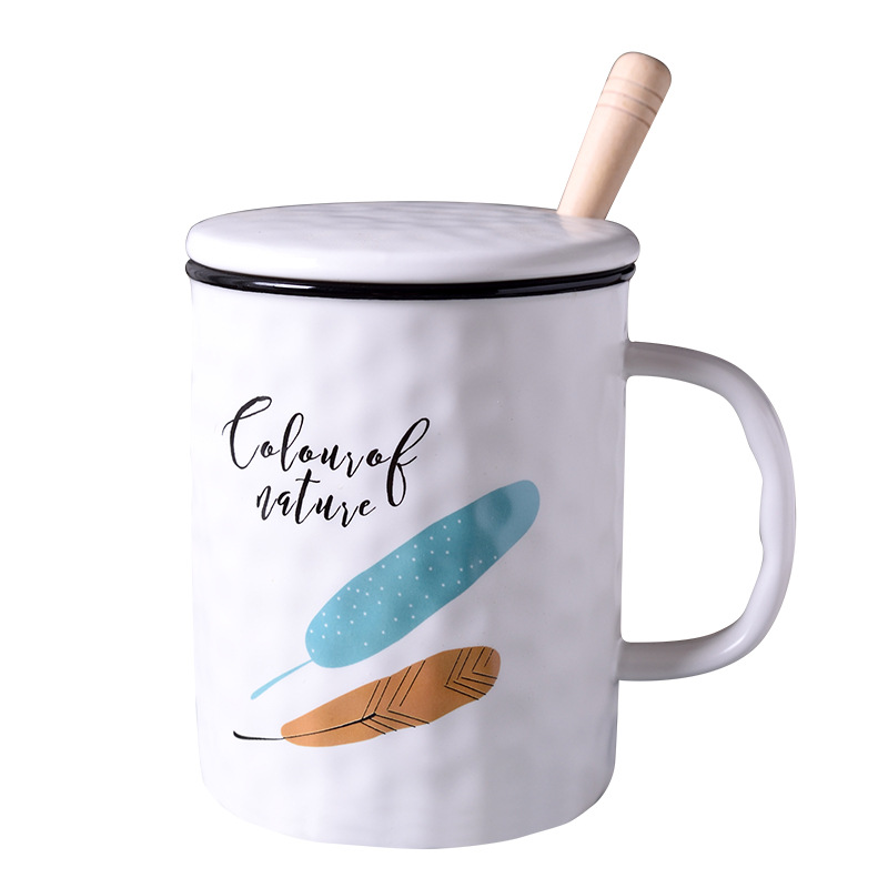 Color of nature北欧ins风带盖带勺子陶瓷杯 创意礼品杯定制 素质拓展小礼品