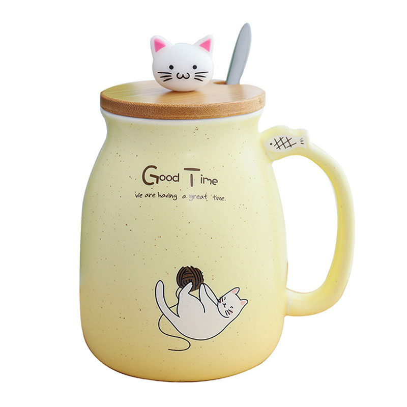 猫咪带盖带勺彩色釉马克杯 牛奶杯 办公饮水杯 影院开业适合的小礼品