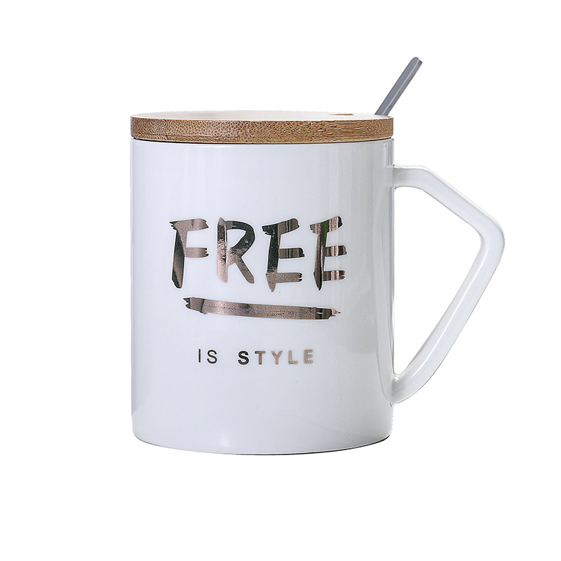 北欧INS风简约描金 风景 动物陶瓷马克杯定制 带盖带勺咖啡杯 政府职员小礼品