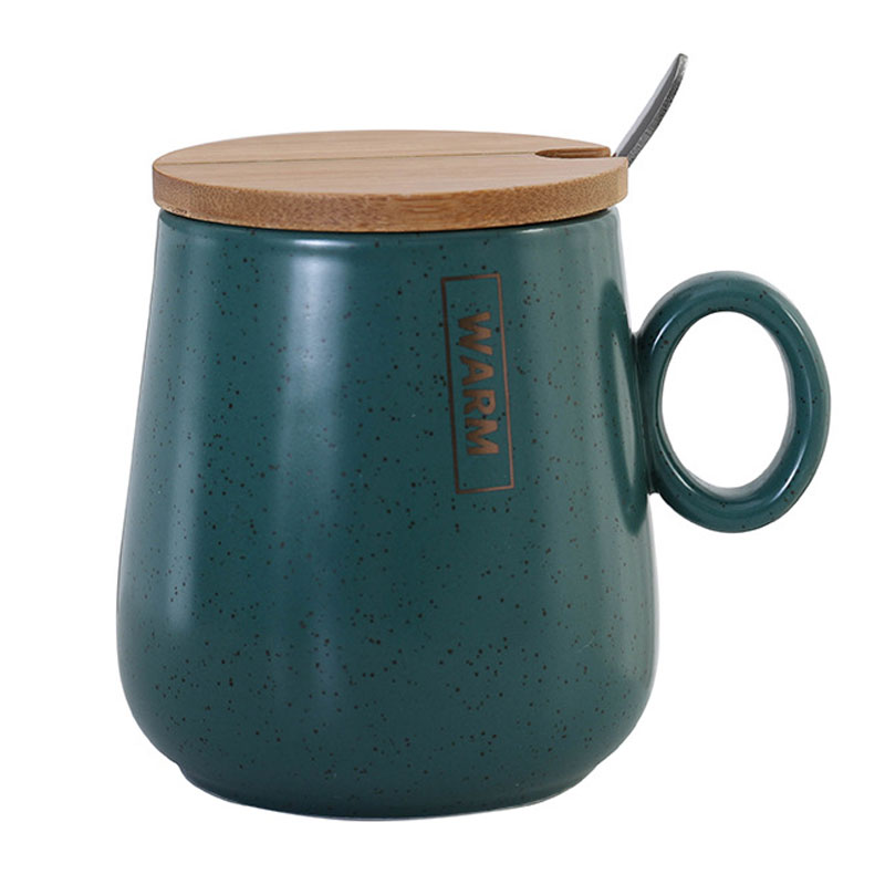简约商务风墨绿满天星带盖带勺陶瓷杯 公司周年纪念品