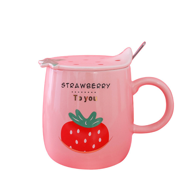 韩式粉色系草莓卡通可爱带盖带勺创意咖啡水杯 送职员的礼品,什么比较合适