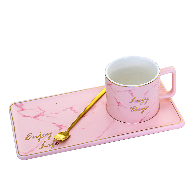 Enjoy Life创意大理石纹北欧INS风 描金陶瓷杯 咖啡杯 马克杯定制 最实用创意小礼品