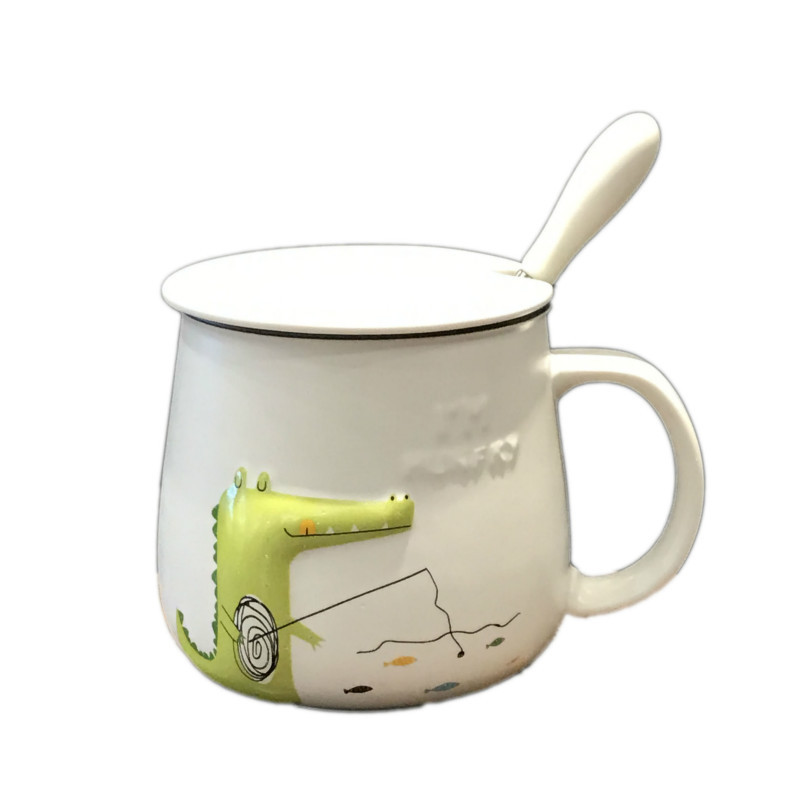 卡通鳄鱼恐龙立体浮雕图案学生儿童马克杯带盖勺早餐杯 适合现场发放的小礼品