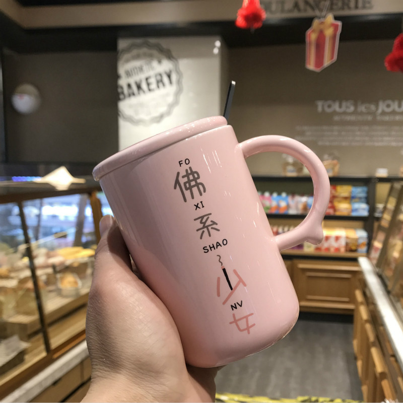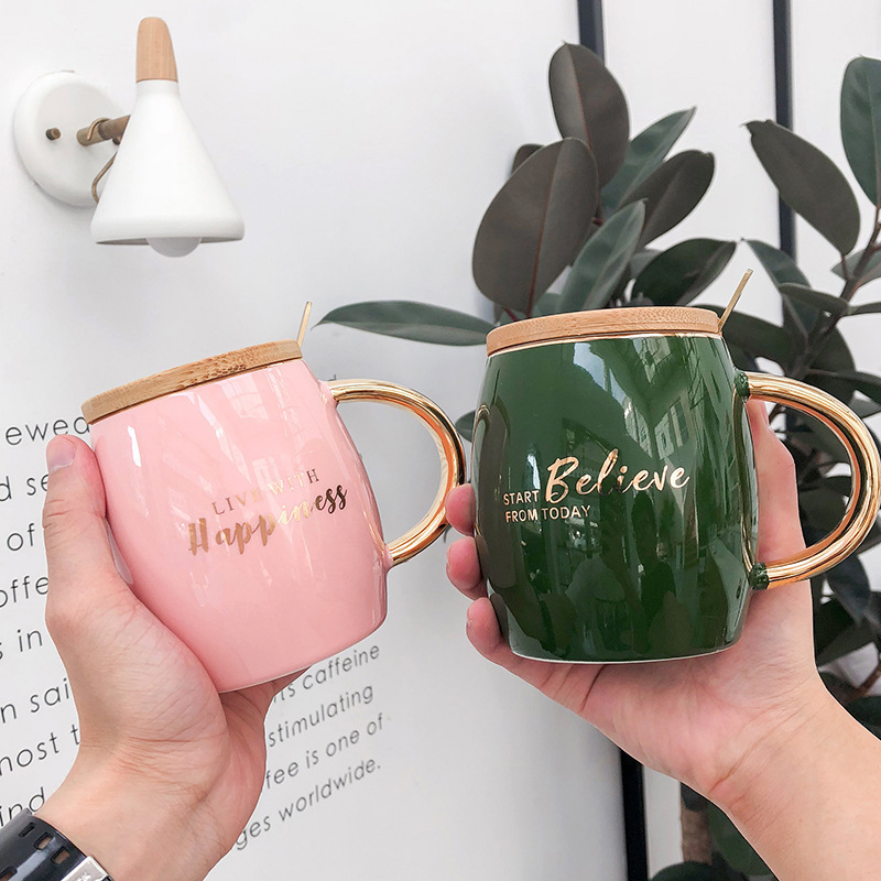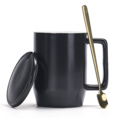 北欧风简约带盖勺创意个性马克杯 定制礼品