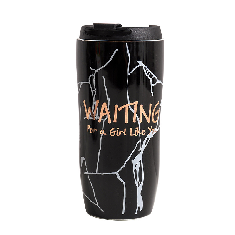简约创意大理石纹情侣陶瓷杯北欧风带盖咖啡杯子 趣味运动会奖品