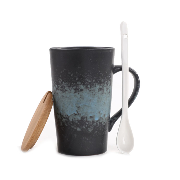 复古陶瓷竹盖带勺杯子 多款图案可选 活动送什么小礼品