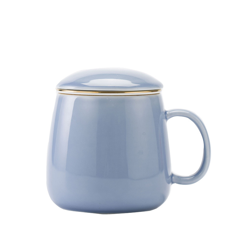 简约清新马克杯茶杯带盖过滤办公室泡茶杯水分离陶瓷杯 公司小礼品