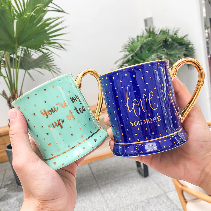 创意波点描金把手金边简约北欧风陶瓷杯 实用礼品