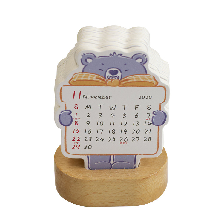 2020年插卡式台历 小可爱迷你动物台历 实木底座趣味小台历 创意小礼品