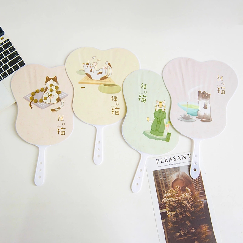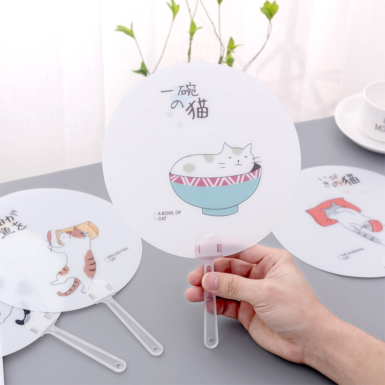 【猫咪】卡通圆形夏日小扇子 PVC材质有韧性不易折断 互动游戏小礼品