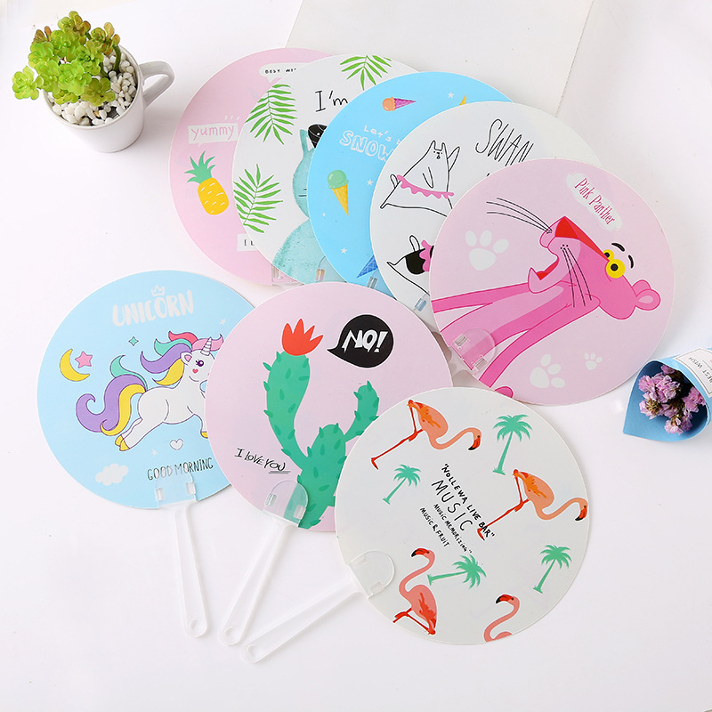 【独角兽】卡通圆形夏日小扇子 PVC材质有韧性不易折断 展会赠品
