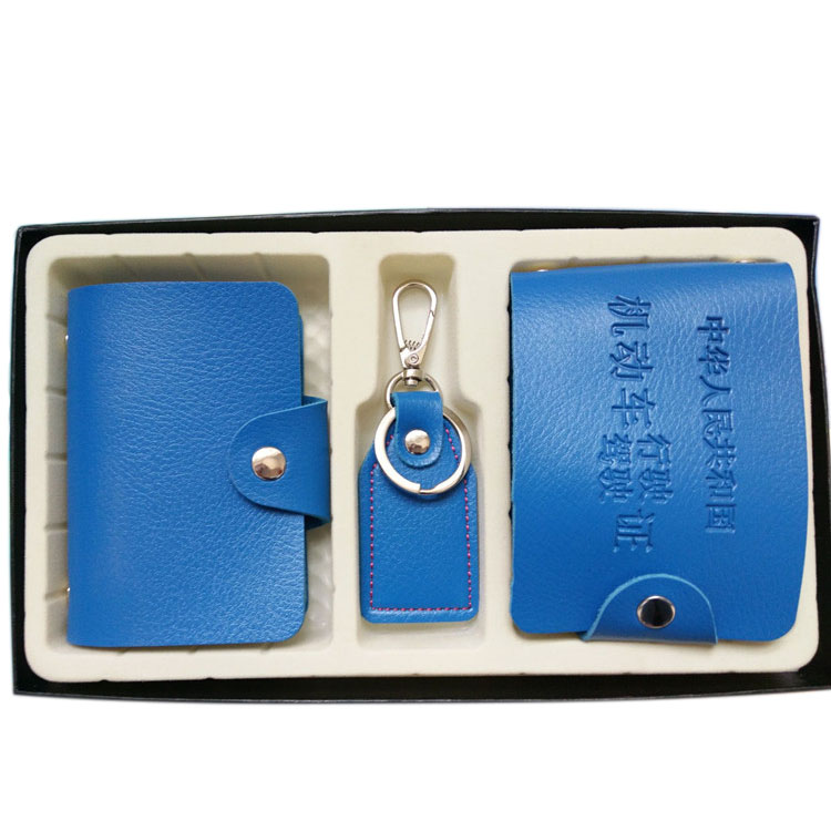 多彩荔枝纹卡包 驾驶证套 钥匙扣三件套 促销礼盒套装 促销小礼品