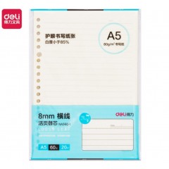 得力(deli) A5/60张活页笔记本替芯 20孔横线格式替芯活页纸