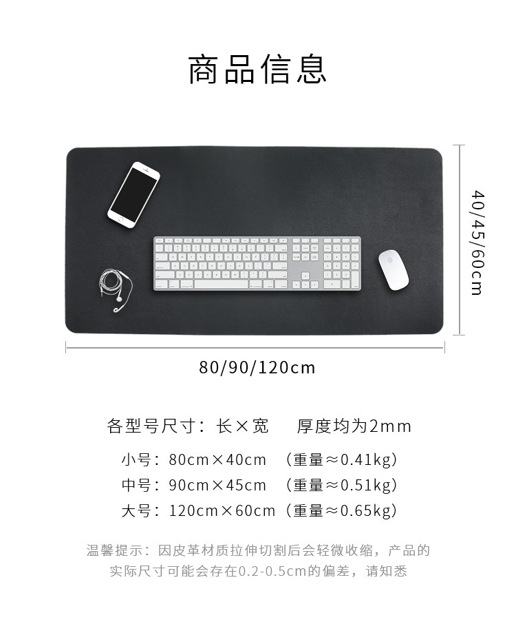 商品名称:双面颜色超纤皮革鼠标垫 超大鼠标垫办公桌垫 创意商务礼品