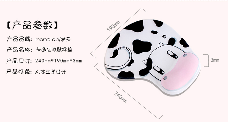 商品名称:【巧克力喵】卡通动物护腕鼠标垫 柔软硅胶手托 防滑底面 实用小礼品