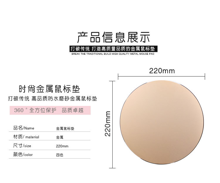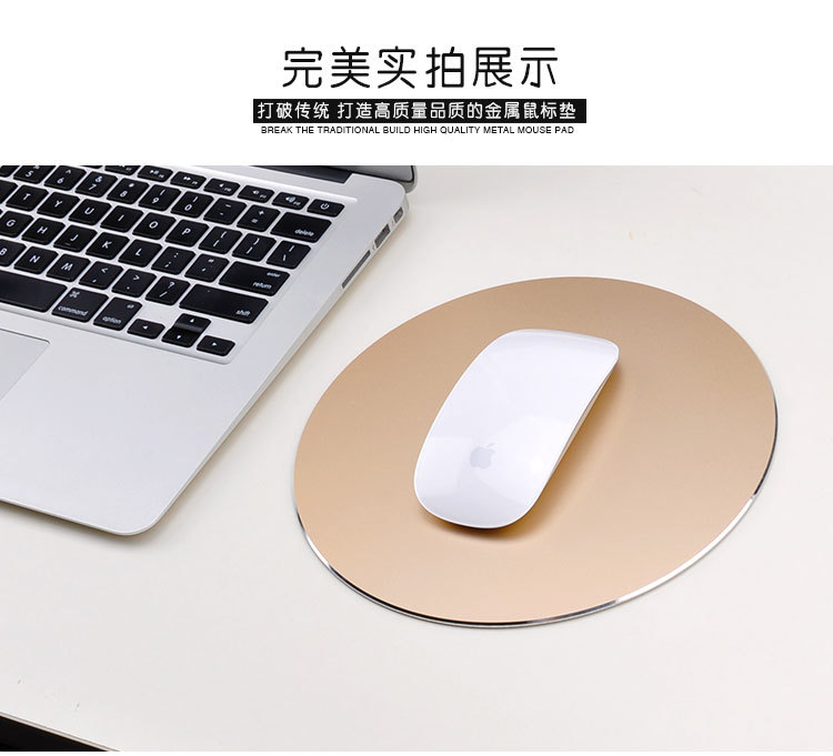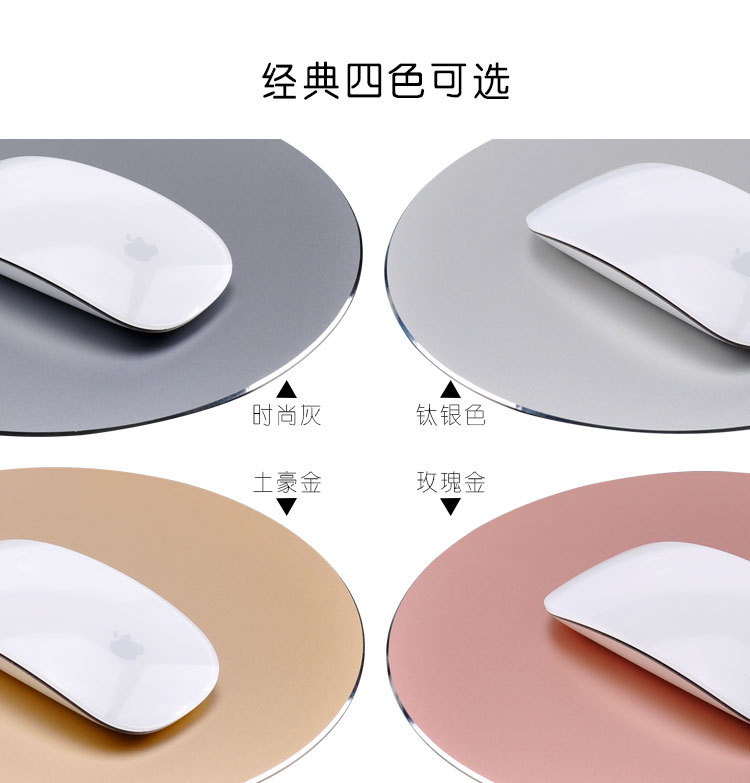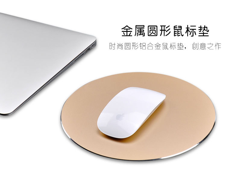商品名称:高端铝合金圆形鼠标垫 一面金属一面皮革 轻薄简约大气 商务场合适合送什么礼物