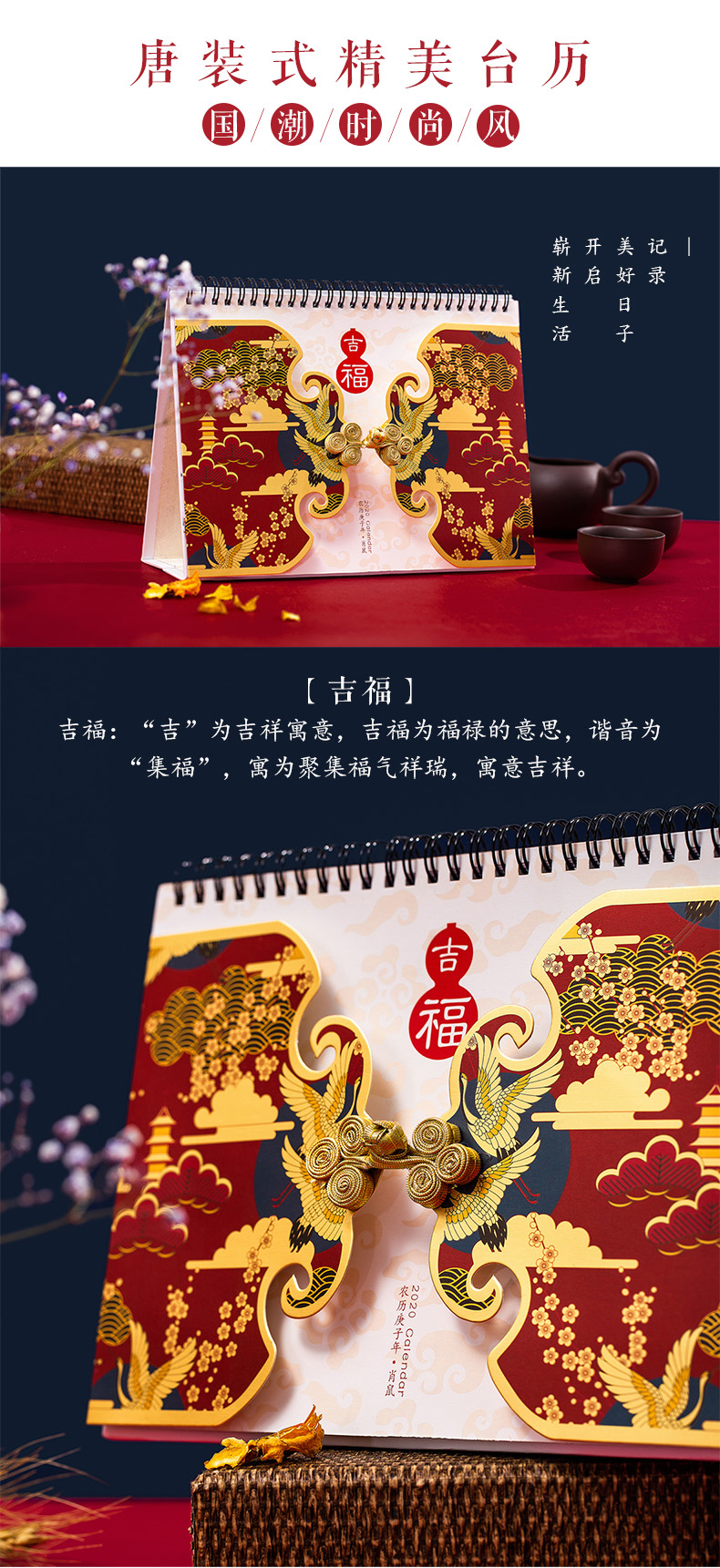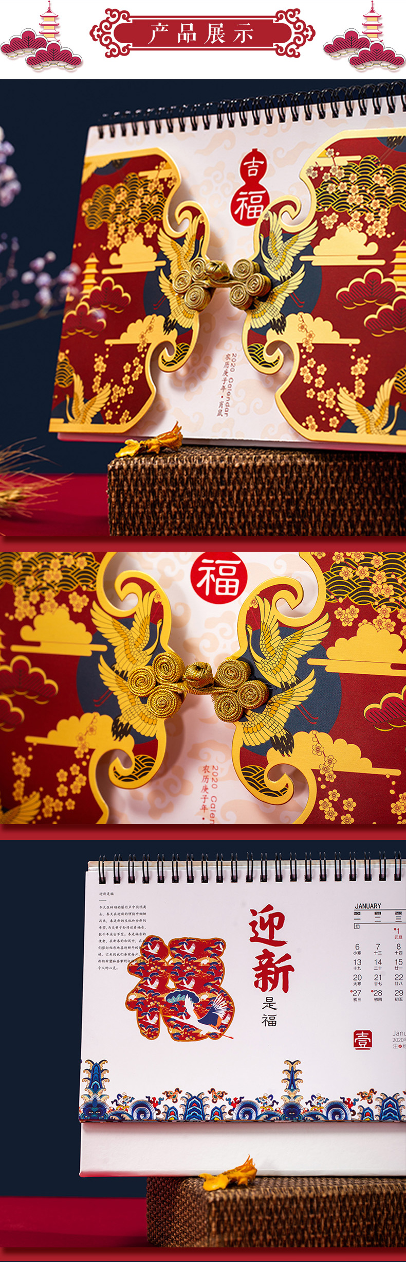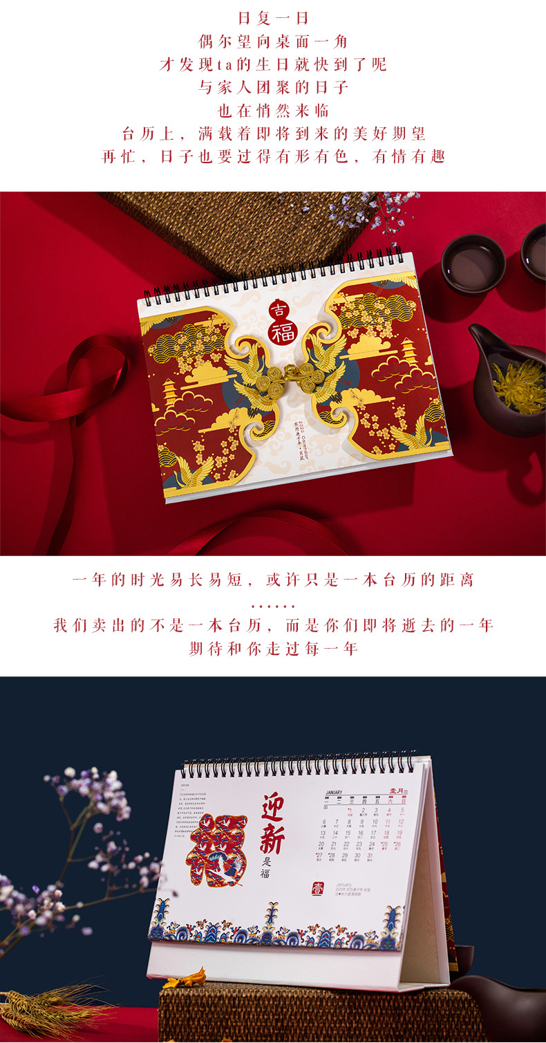 商品名称:唐装式精美台历日历 加厚纸质实用内页 吸引客户的小礼品
