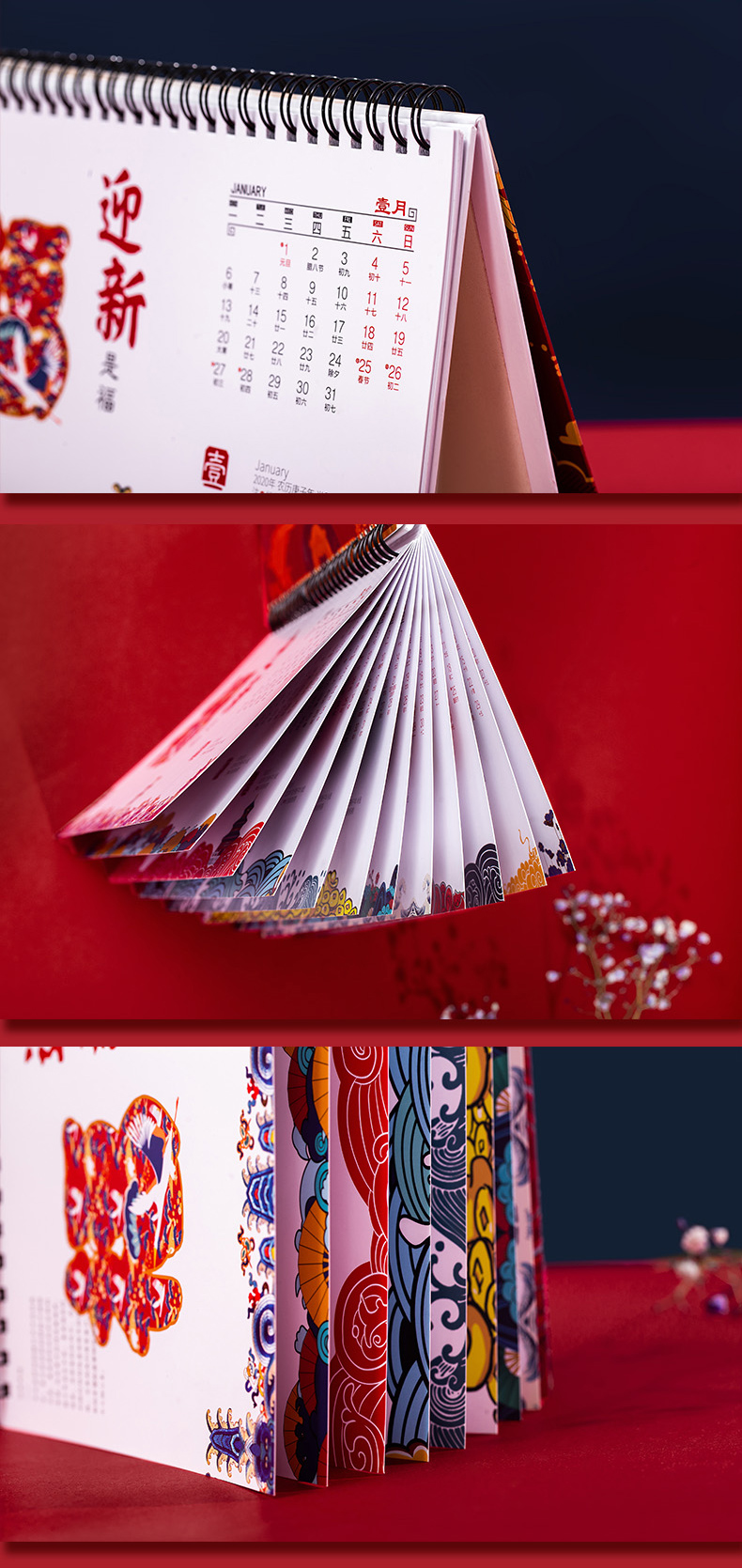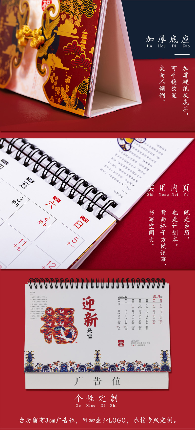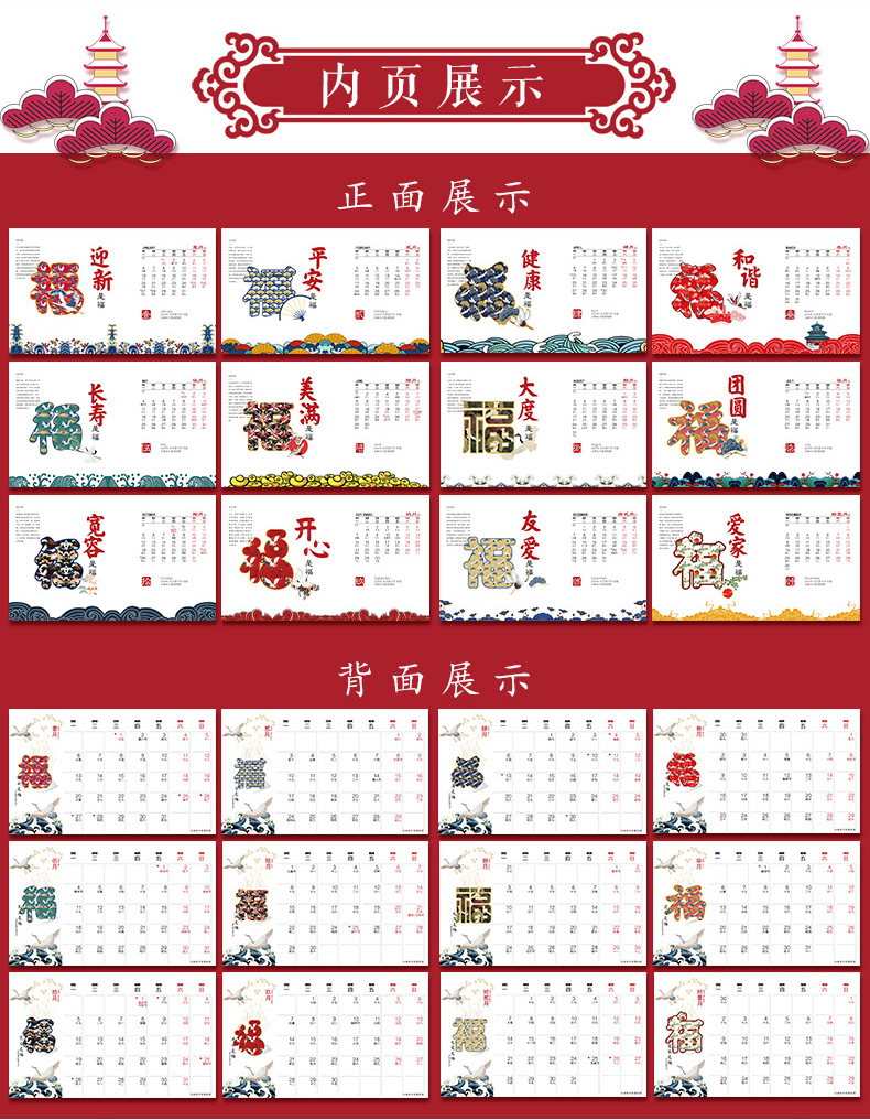 商品名称:唐装式精美台历日历 加厚纸质实用内页 吸引客户的小礼品