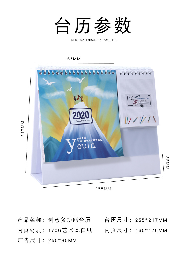 商品名称:2020年多功能记事台历 收纳袋设计 既是台历也是计划本 会员礼品送什么好