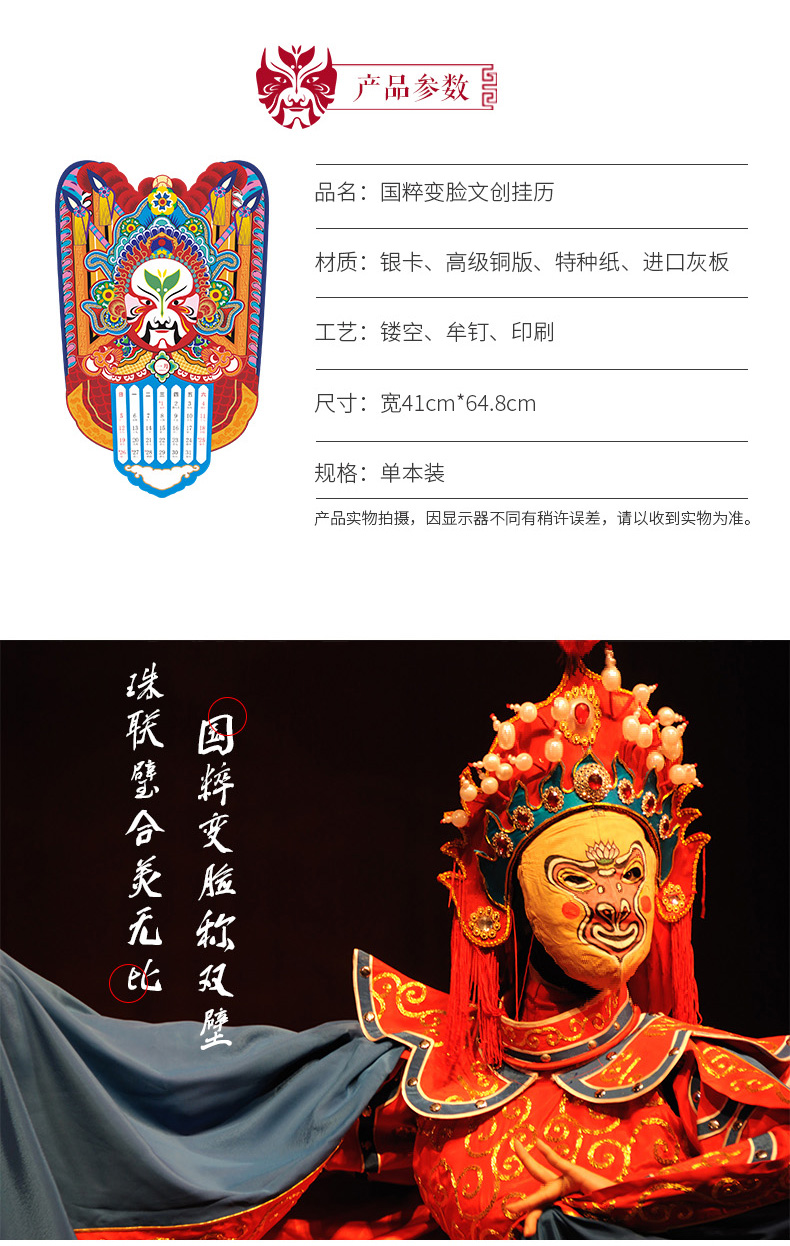 商品名称:【国粹变脸挂历】刷脸国礼上线 国粹之美 文化创意礼品
