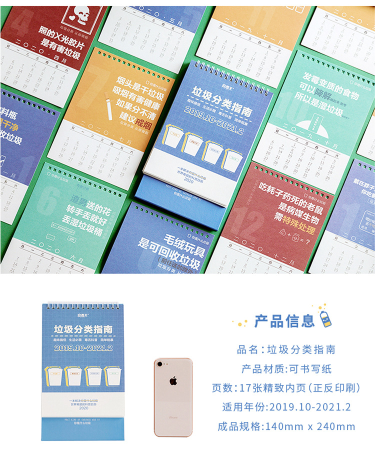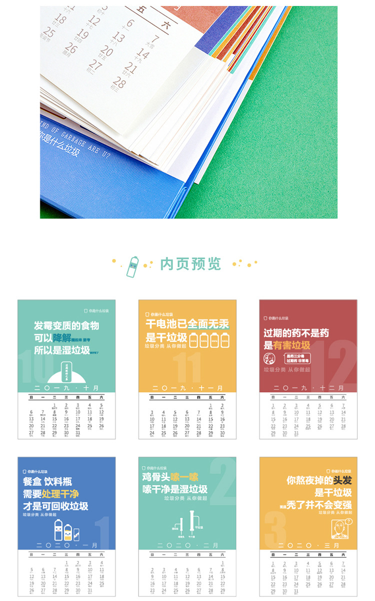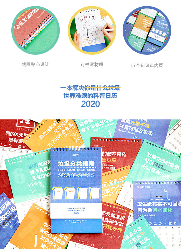 商品名称:【2020垃圾分类指南】一本解决你是什么垃圾世界难题科普日历 实用广告小礼品