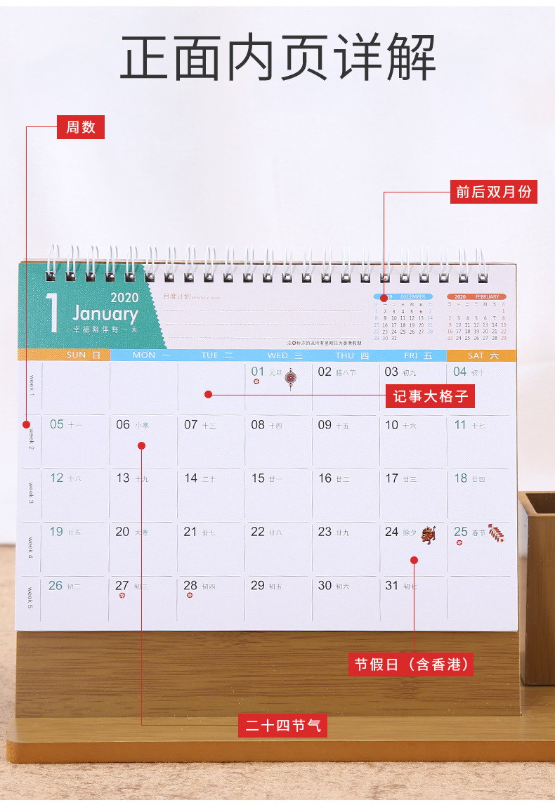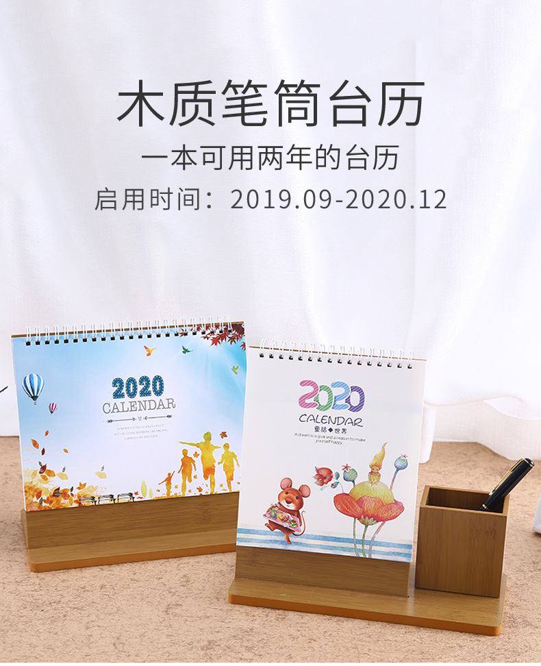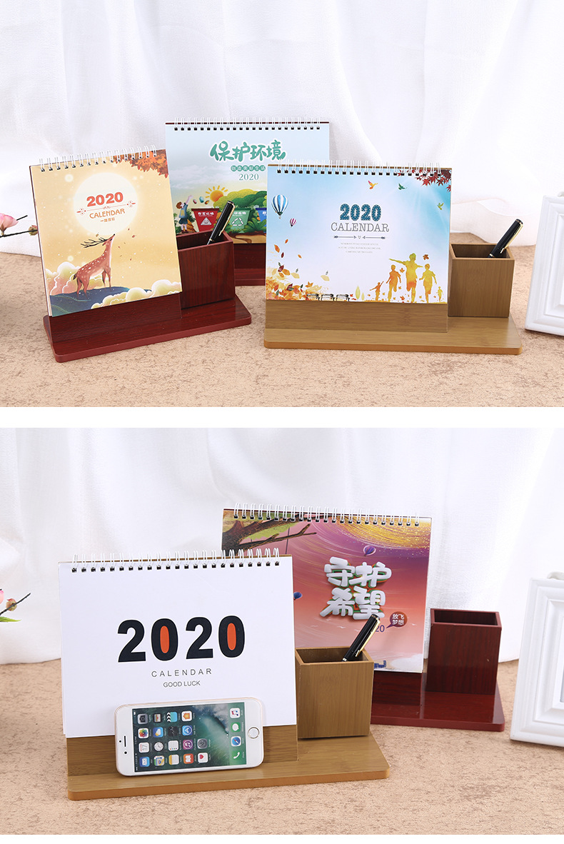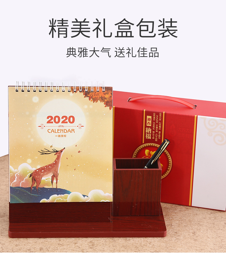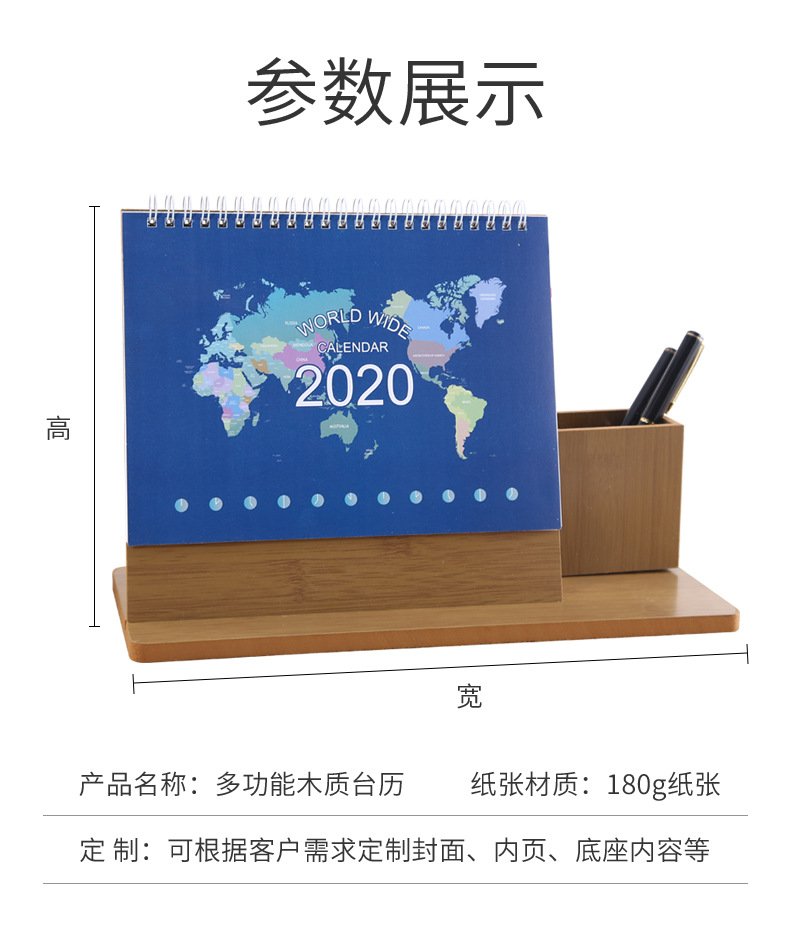 商品名称:木质笔座2020台历 跨年15个月商务日历定制 实用的商务礼品