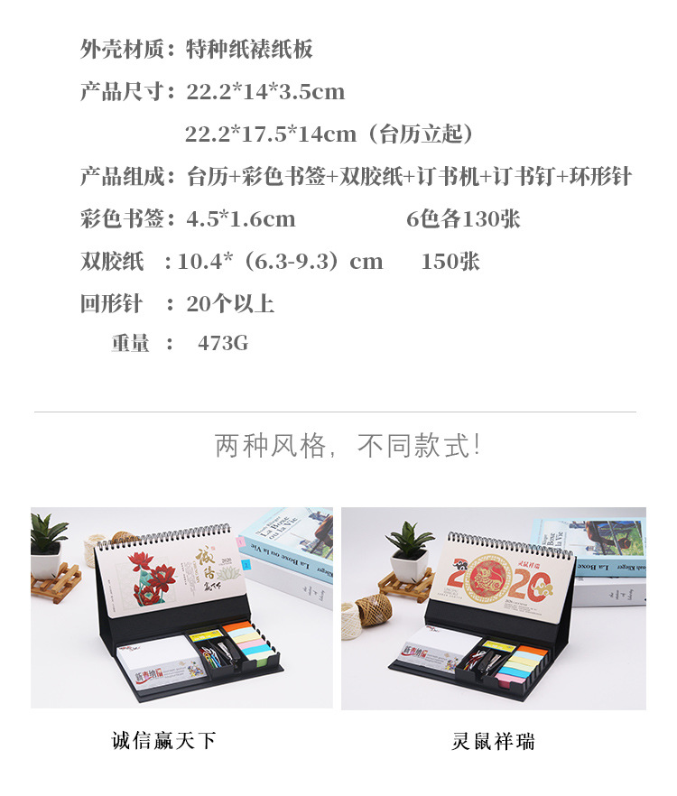 商品名称:2020年创意商务桌面记事台历 办公小助手 定制办公礼品