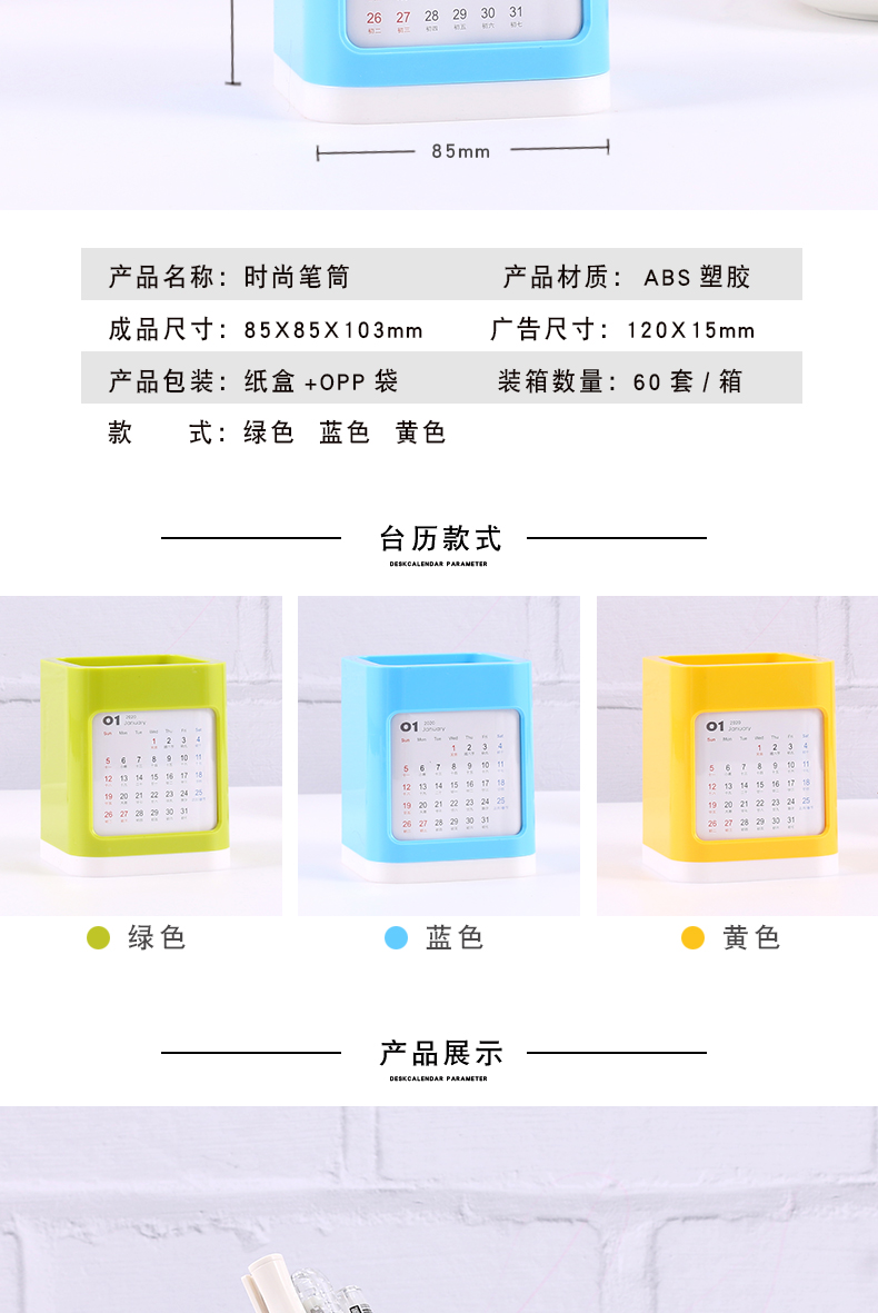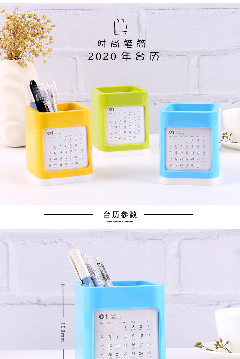 商品名称:多彩时尚笔筒 2020多功能桌面台历 创意生活小礼品