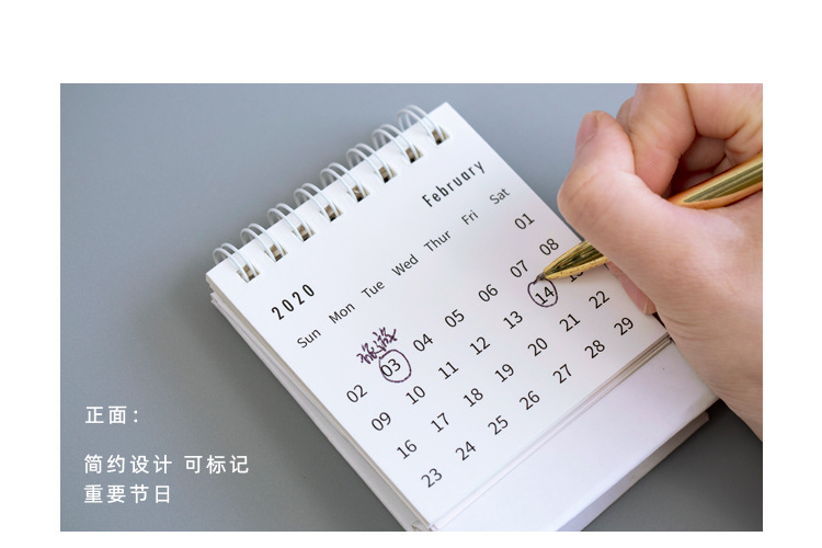 2020简约桌面小台历 迷你桌面记事线圈台历本 随手赠礼品