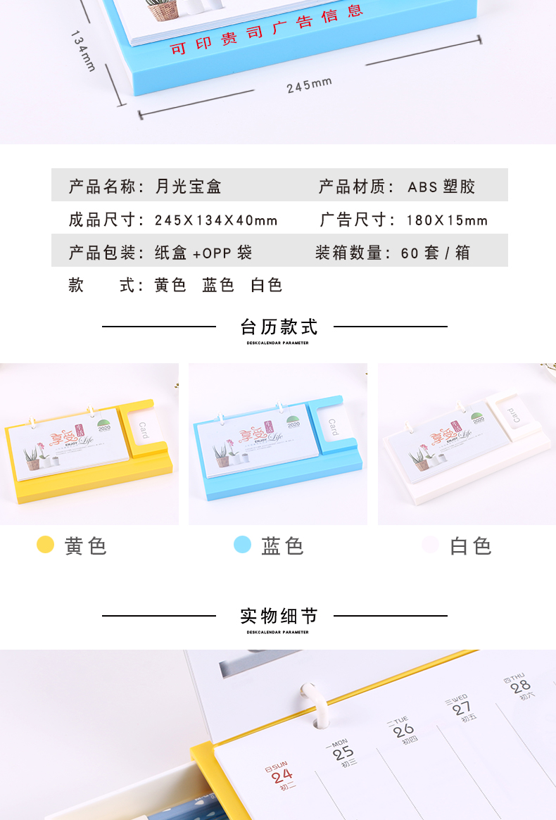商品名称:创意多功能桌面周历 桌面收纳盒日历 2020鼠年台历礼品