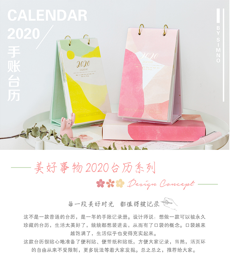 2020创意手账记事台历本 翻页月历 日历定制 体现团队凝聚力的礼品