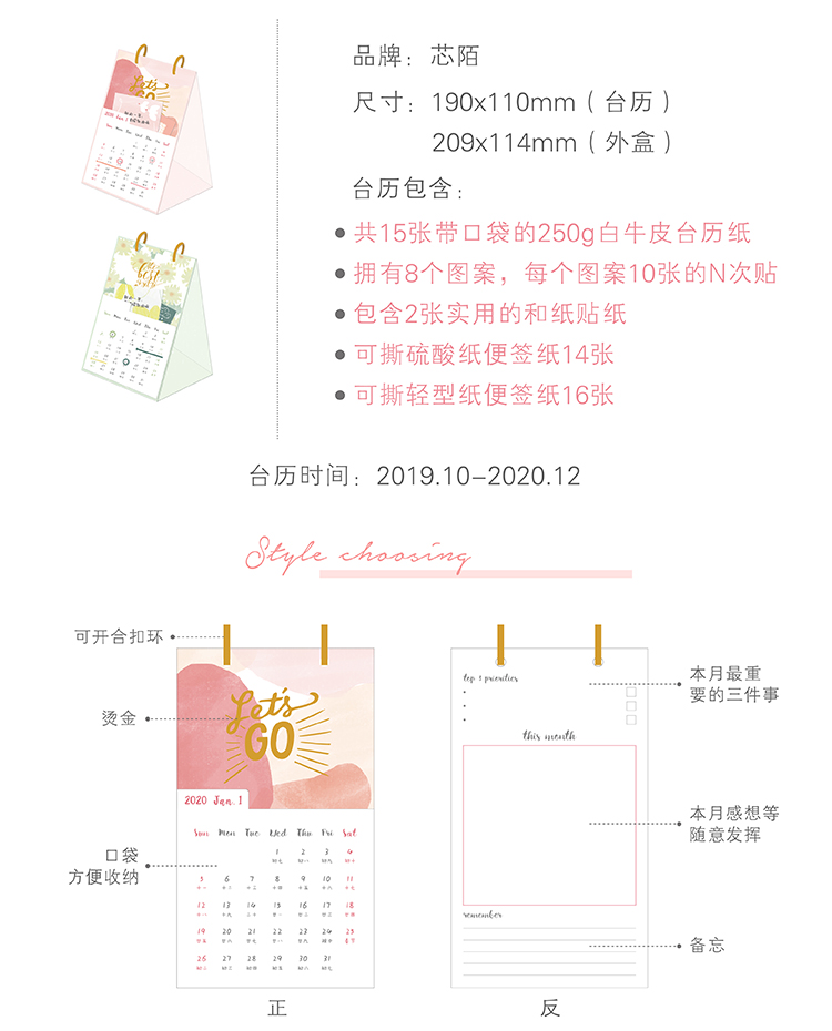 商品名称:2020创意手账记事台历本 翻页月历 日历定制 体现团队凝聚力的礼品