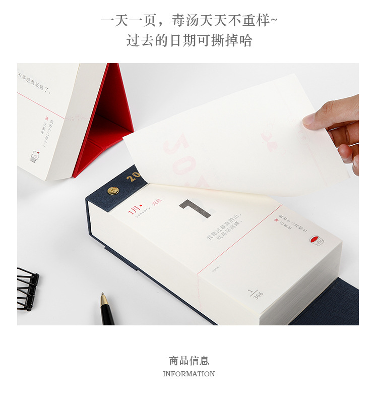 商品名称:365毒汤日历手撕台历 折叠书立设计 企业年终福利