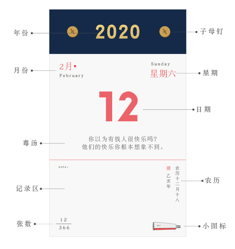 365毒汤日历手撕台历 折叠书立设计 企业年终福利