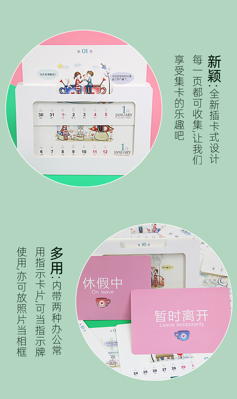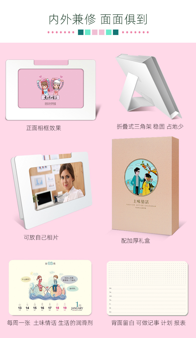 商品名称:2020年创意相框周历插卡设计 可当相框台历日历 创意年终礼品