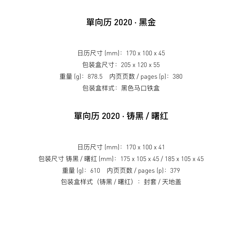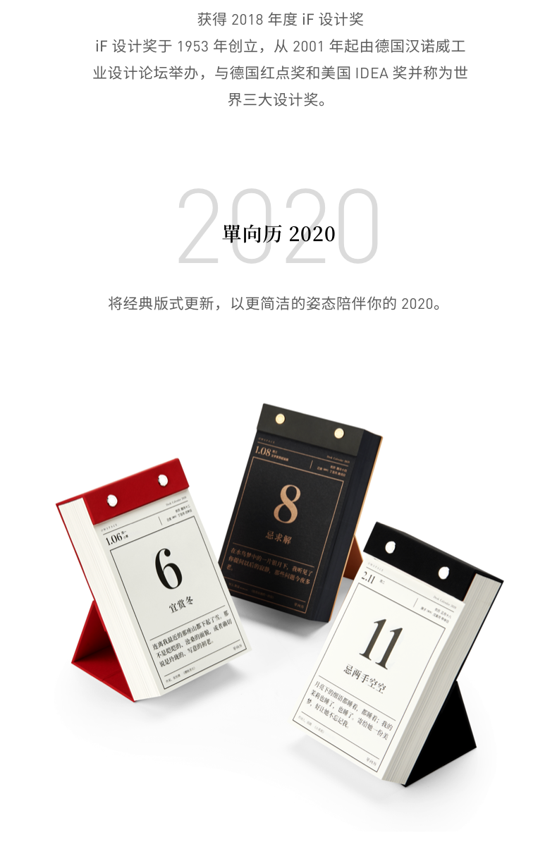 商品名称:2020年单向空间单向历 经典设计配套APP 优秀员工奖励奖品