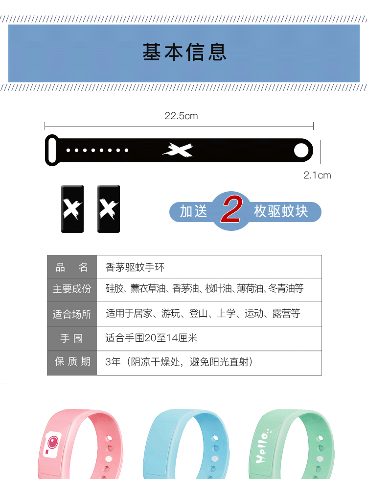 商品名称:时尚硅胶驱蚊手环 防蚊手环 定制促销小礼品