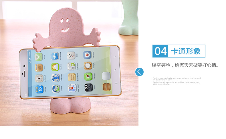 商品名称:小麦秸秆可爱拥抱笑脸手机支架 平板电脑支架--浅绿色