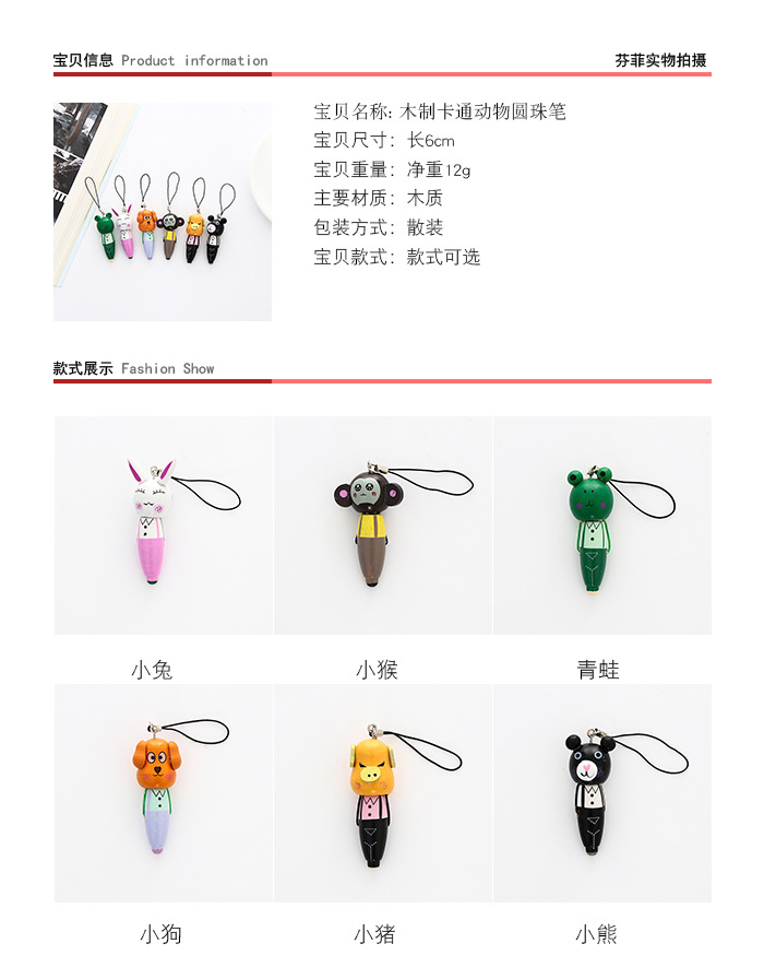 商品名称:手机挂件随身笔 卡通圆珠笔手机链 1元左右小小礼品