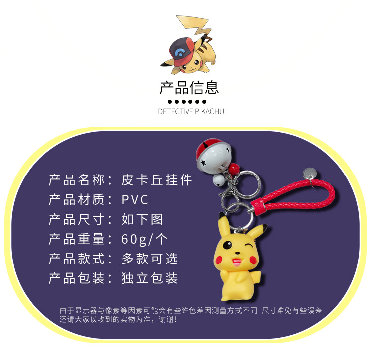 商品名称:宠物精灵皮卡丘钥匙扣玩偶挂件 旋转设计有趣好玩 活动小礼品送什么能吸引人