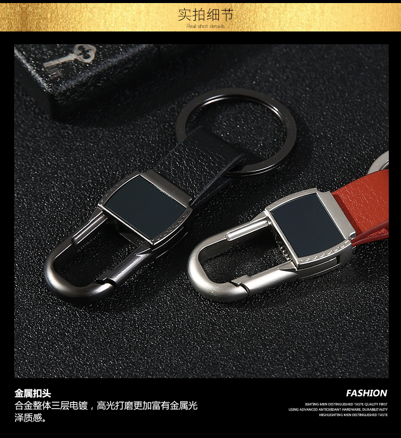 商品名称:金属皮质钥匙扣 柔软耐用加厚用料 三层电镀更有质感 优质扣环