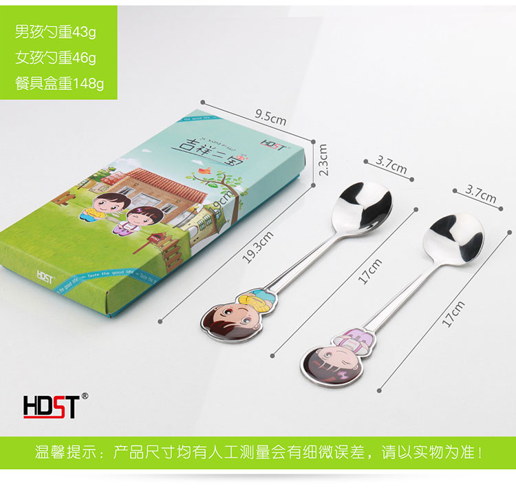 商品名称:吉祥二宝不锈钢餐具套装 可爱一家人勺子两件套(儿女)