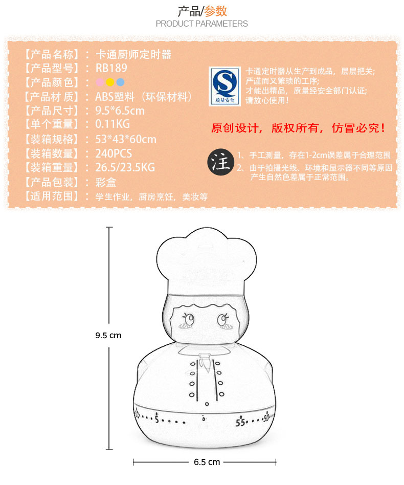 商品名称:卡通厨师定时器 厨房机械倒计时器 烹饪提醒器