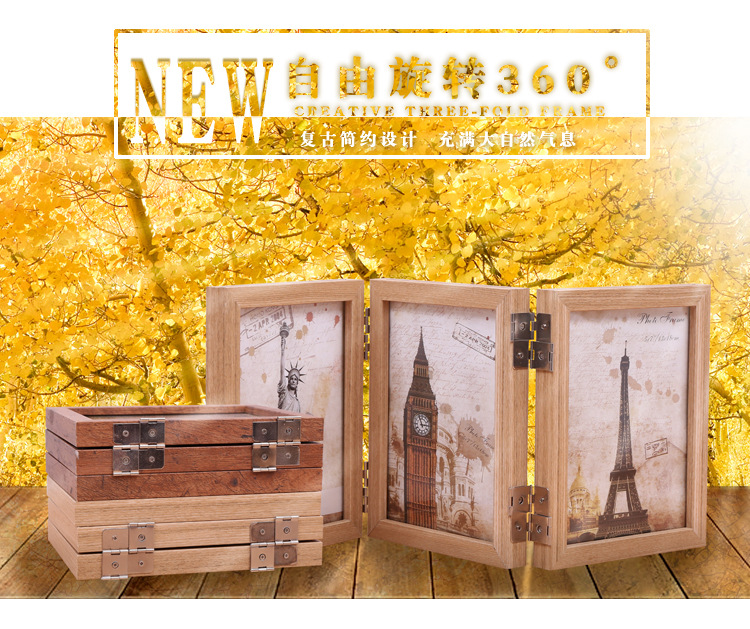 商品名称:创意折叠三折相框 自由旋转摆放 双层玻璃6寸 创意客户礼品