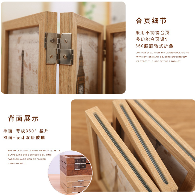 创意折叠三折相框 自由旋转摆放 双层玻璃6寸 创意客户礼品