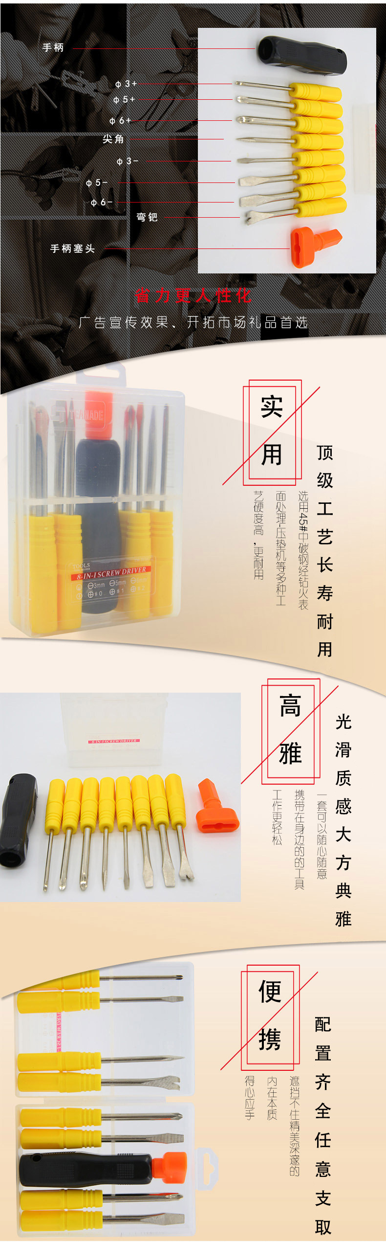 商品名称:优质五金工具套装 9合1工具组 多功能小工具9件套 展会礼品推荐