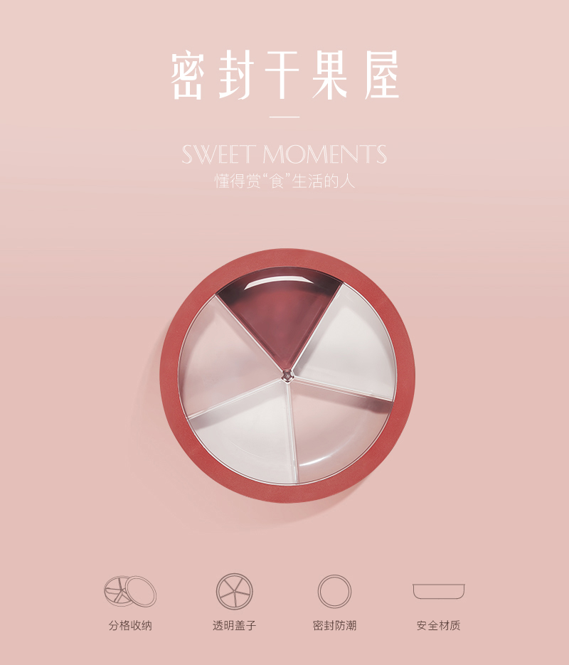 商品名称:北欧圆形透明盖密封五格干果盘 零食收纳糖果盒--蓝色 送顾客什么礼品
